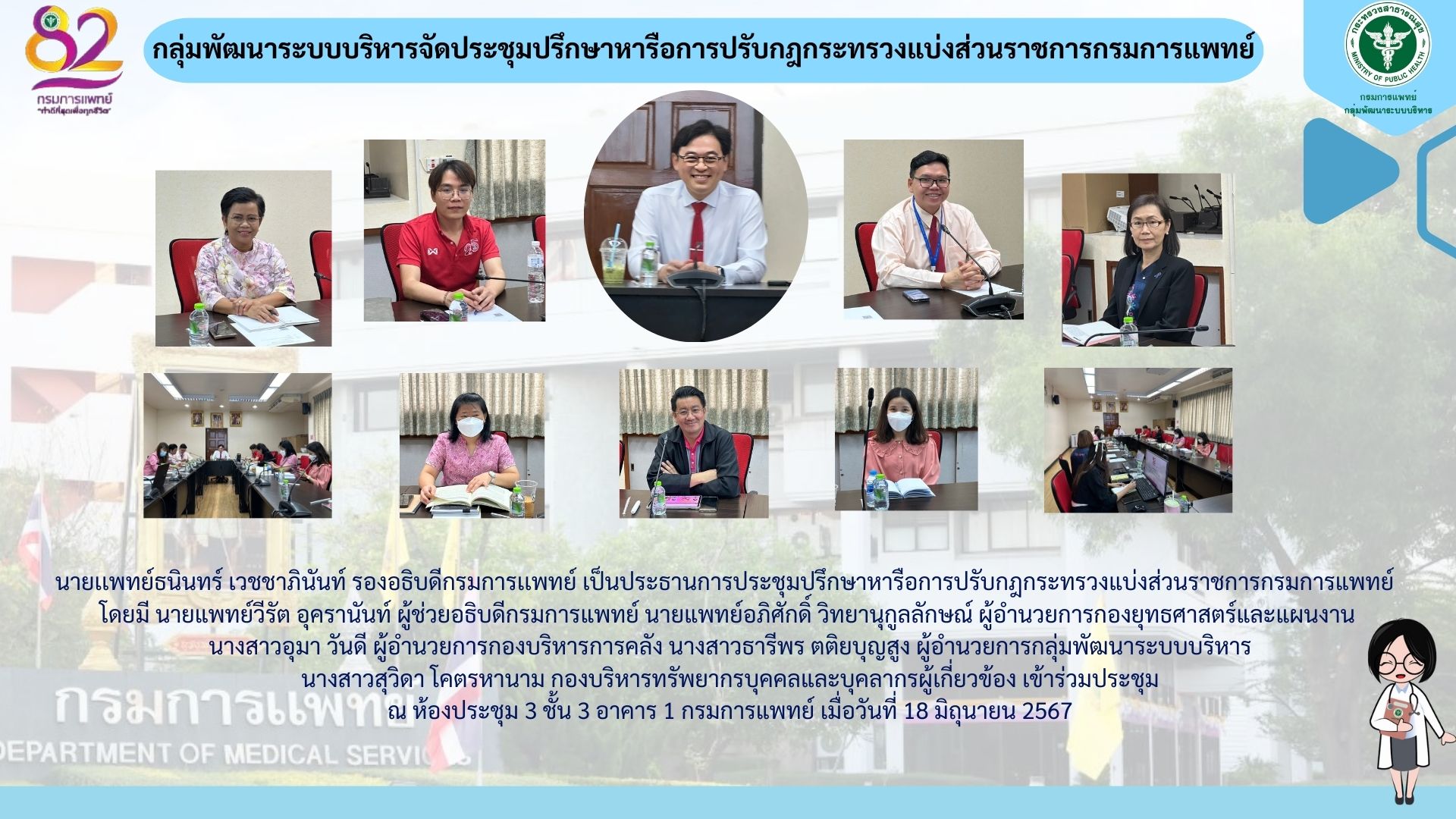 นายเเพทย์ธนินทร์ เวชชาภินันท์ รองอธิบดีกรมการเเพทย์ เป็นประธานการประชุมปรึกษาหารือการปรับกฎกระทรวงแบ่งส่วนราชการกรมการแพทย์